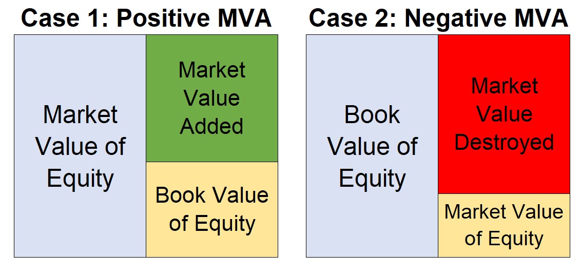 \[ \small MVA= \text{Market Value of Equity} - \text{Book Value of Equity} \] 2. Now, in equilibirum, we should expected if the Market Value of Equity to be the Book Value of Equity plus all the expected EVAs: