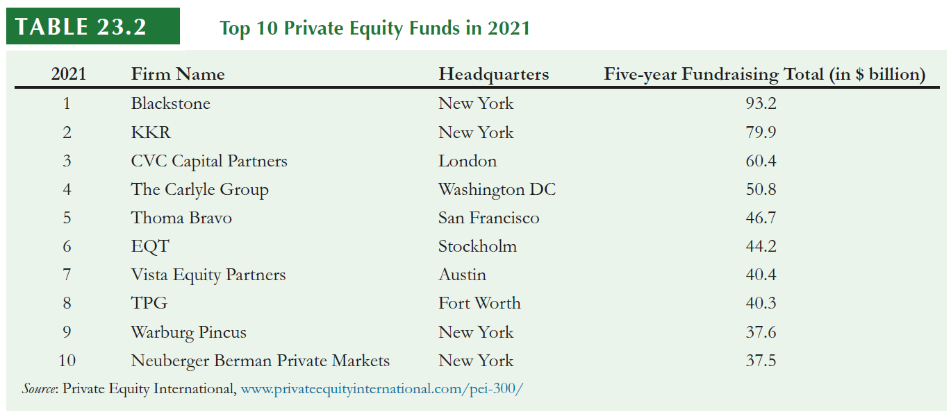 Organized very much like a venture capital firm, but it invests in the equity of existing privately held firms rather than start-up companies. Private equity firms also might initiate their investment by finding a publicly traded firm and purchasing the outstanding equity, thereby taking the company private in a transaction called a leveraged buyout (LBO).