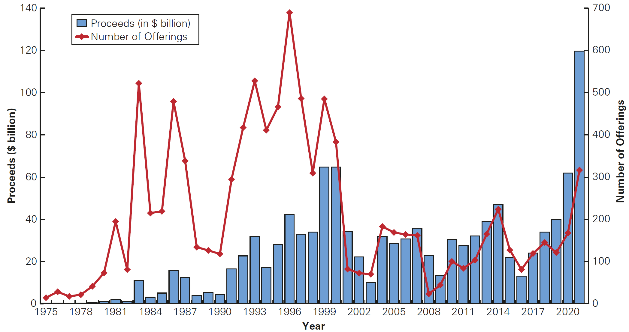 The number of issues is highly cyclical: When times are good, the market is flooded with new issues; when times are bad, the number of issues dries up