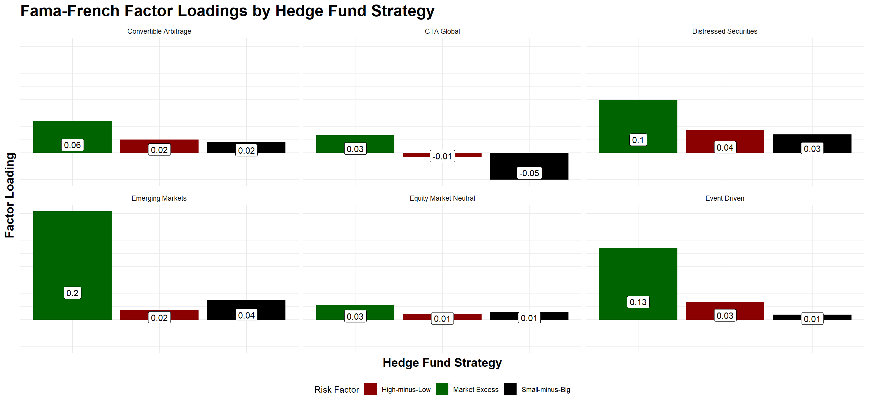 labs(title = "Fama-French Factor Loadings by Hedge Fund Strategy",