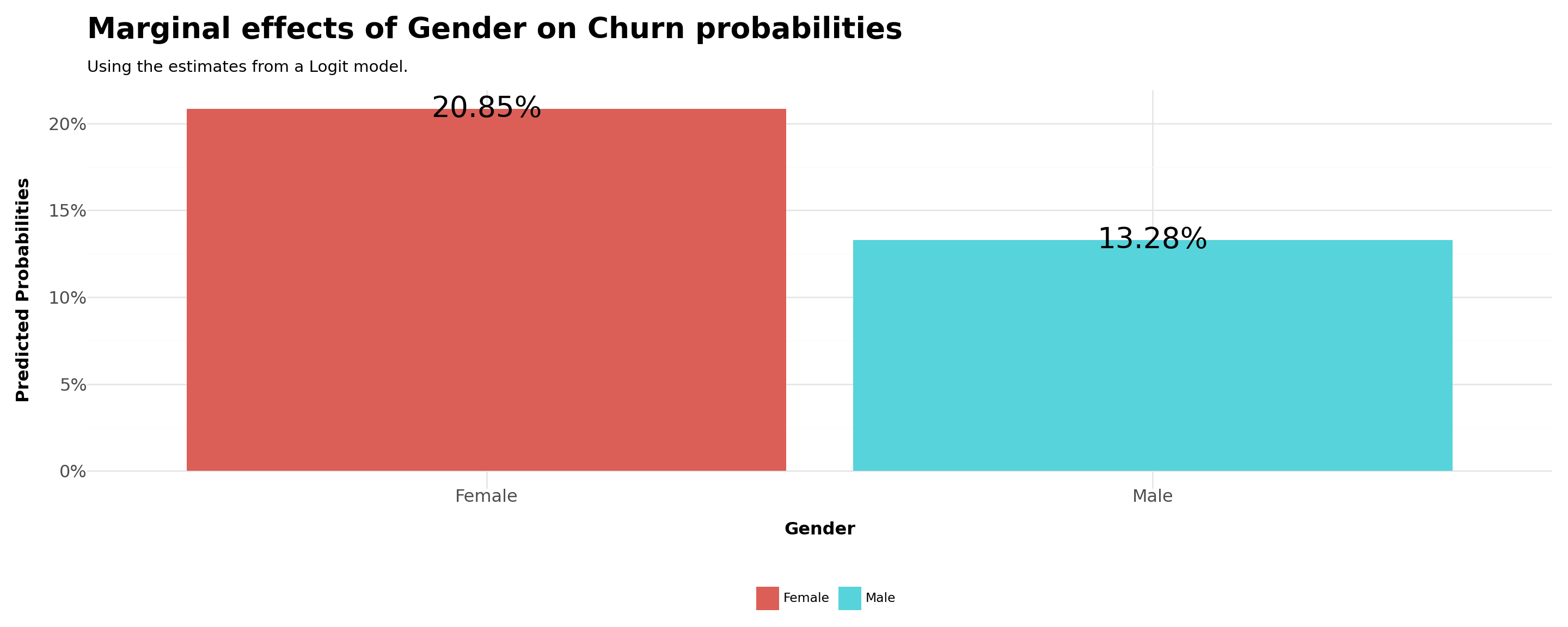 title ='Marginal effects of Gender on Churn probabilities',