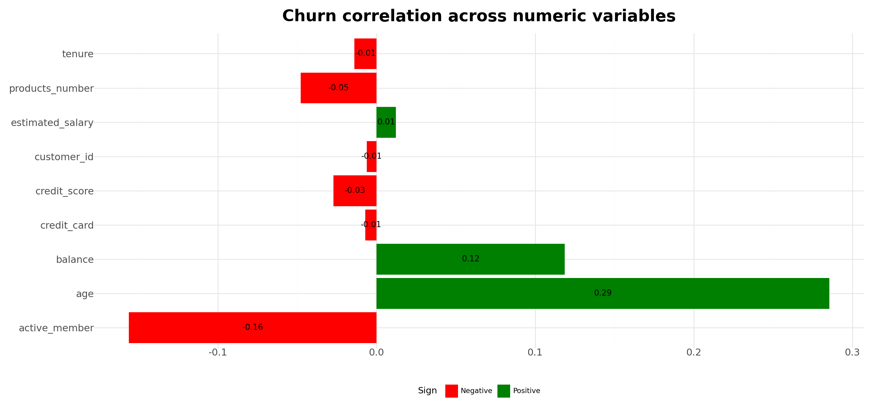 Plot.show()We saw that women tend to churn, approximately, \(8\) percentage points more than men