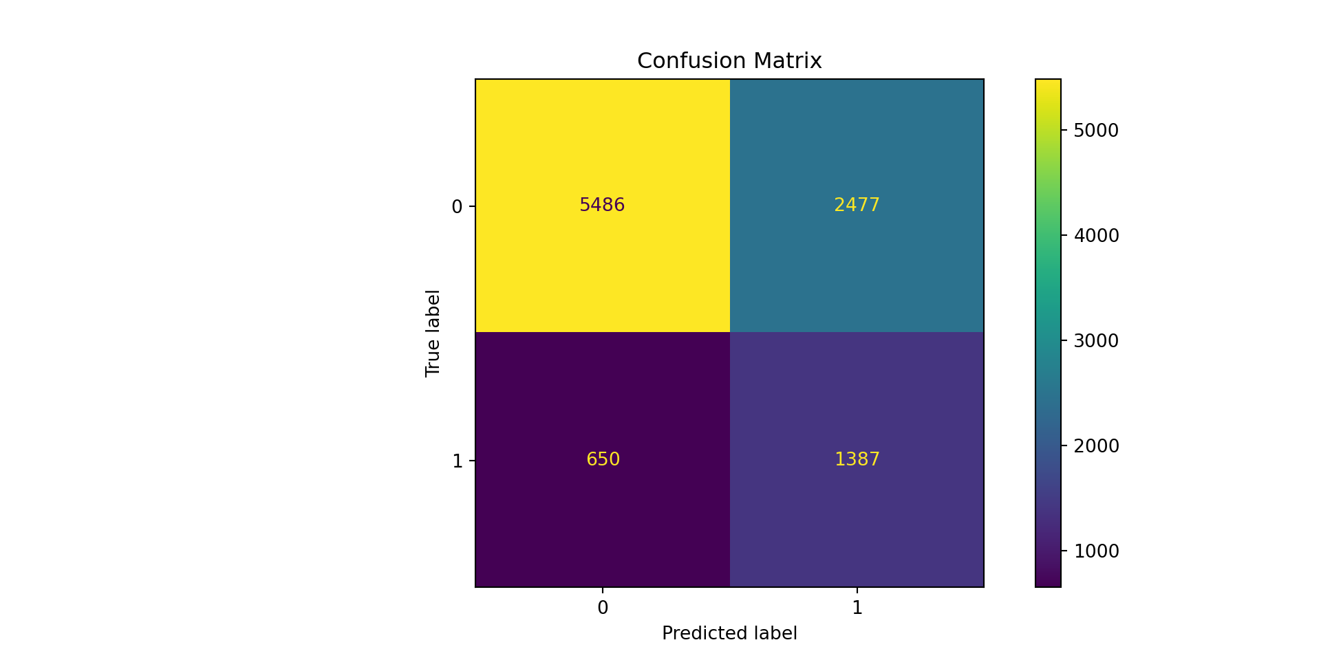 Type I Errors (\(2,477\)) are the False Positive cases: we wrongly classified customers that did not churn as churned!
