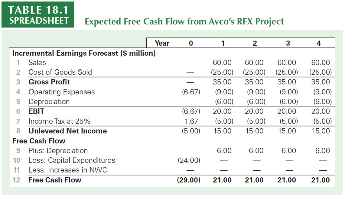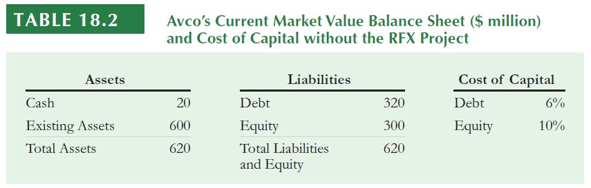 Because the RFX project has similar risk to Avco’s other investments, its unlevered cost of capital is the same as for the firm as a whole